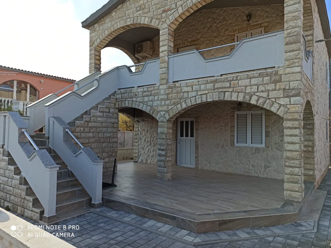 Zamjena stare betonske ograde novom zidanom, siporeksom debljine 7,5 cm. Ugradnja mramornih klupčica duž ograde s rukohvatom od inoxa. Zamjena starih pločica na terasama i stubištu te uređenje okućnice